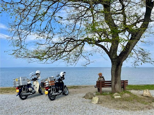 琵琶湖では湖畔をのんびり走り、公園で一服したり、キャンプ場をのぞいてみたり、花畑で写真を撮っ