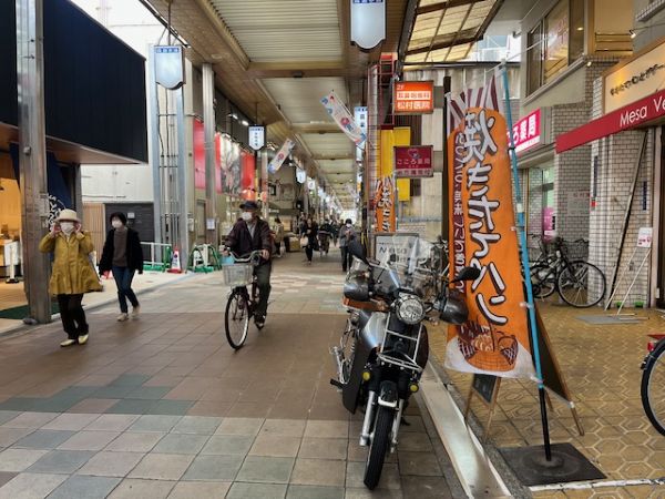 カミさんの命により地元商店街で買い物。もちろん駐輪場まで押し歩いています