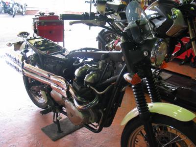 皆さん最初は、「現在乗っているトライアンフ・モダンクラシックに対して、エンジンの調子や足回りなどの違和感についての相談事」でお見えになったお客様。