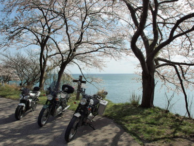 合羽を脱いで、気分も軽く走っているとあっという間に桜並木に到着しました。