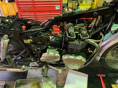 ボンネビルはアイドリング不調でエンストを繰り返し、本当に900ccあるのかと思うほど非力で乗りにくく、購入店で相談しても不調は解決せず、そのうちに乗るのが億劫になり、タマに乗る程度が、タマにエンジンをかける程度となり、ボンネビルはガレージの奥に1年近く眠ることになりました。