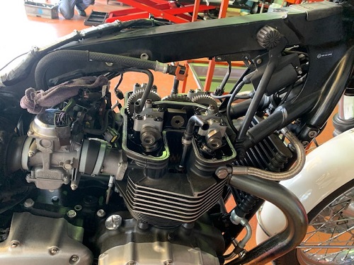NWJCさん独自のノウハウでバルブクリアランスを基準値内としインジェクションの同調や電子制御のテスターチェック等、ボンネビルのエンジンコンディションが整いました。